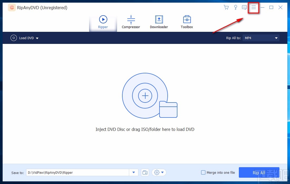 Vidpaw RipAnyDVD是一款非常好用的视频刻录以及编辑软件,该软件界面美观时尚,用户使用这款软件,不仅可以翻录DVD视频,还可以对视频进行压缩、优化等操作,功能十分强大。我们在使用这款软件处理视频的时候,如果我们提前设置好视频的默认保存路径,那么就会减少视频处理的流程,从而提高处理视频的工作效率。鉴于有一些小伙伴刚刚入手这款软件,不知道怎么对其操作。那么接下来小编就给大家详细介绍一下Vidpaw RipAnyDVD设置默认保存路径的具体操作方法,有需要的朋友可以看一看。