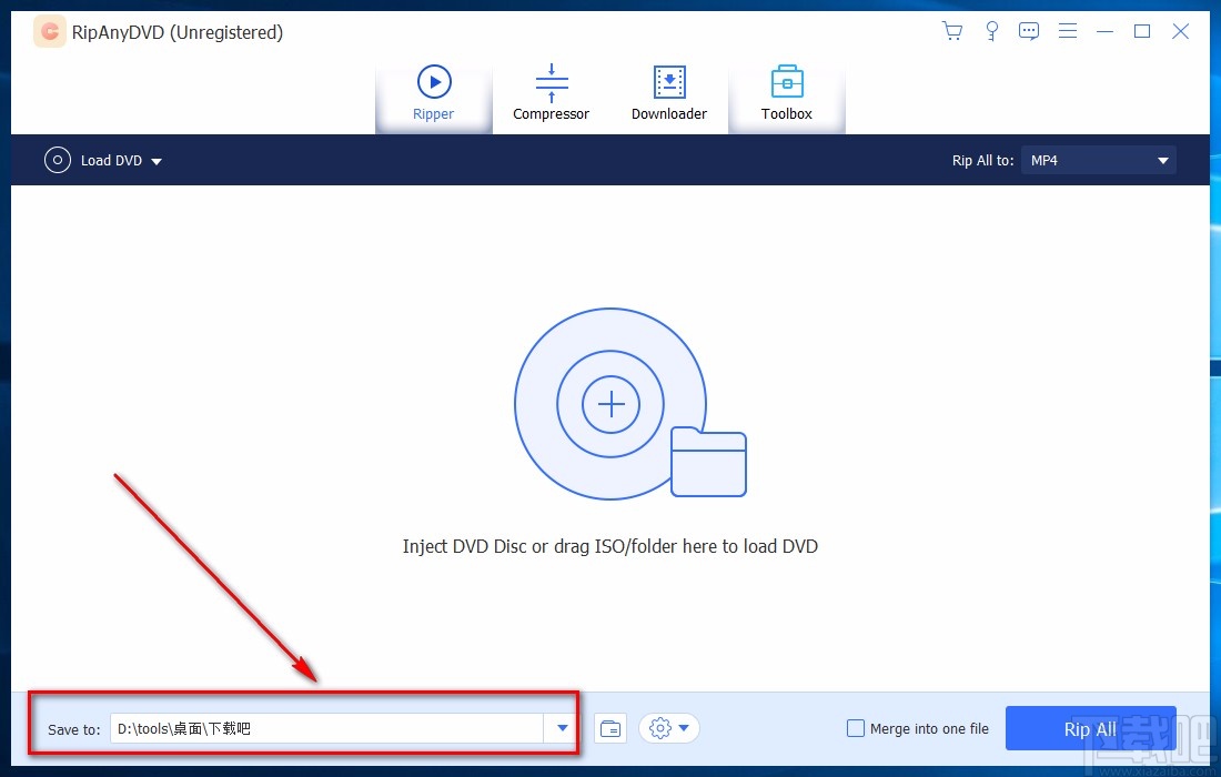 7.最后在主界面下方找到“Save to”选项,该选项后面的文本框中显示的就是刚刚所设置的默认保存路径。