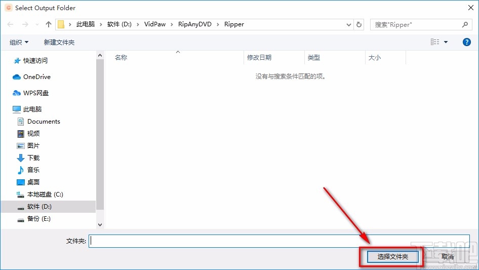 5.随后界面上就会弹出一个文件保存路径选择页面,我们在页面中选择好文件的保存位置后,再点击页面右下角的“选择文件夹”按钮。