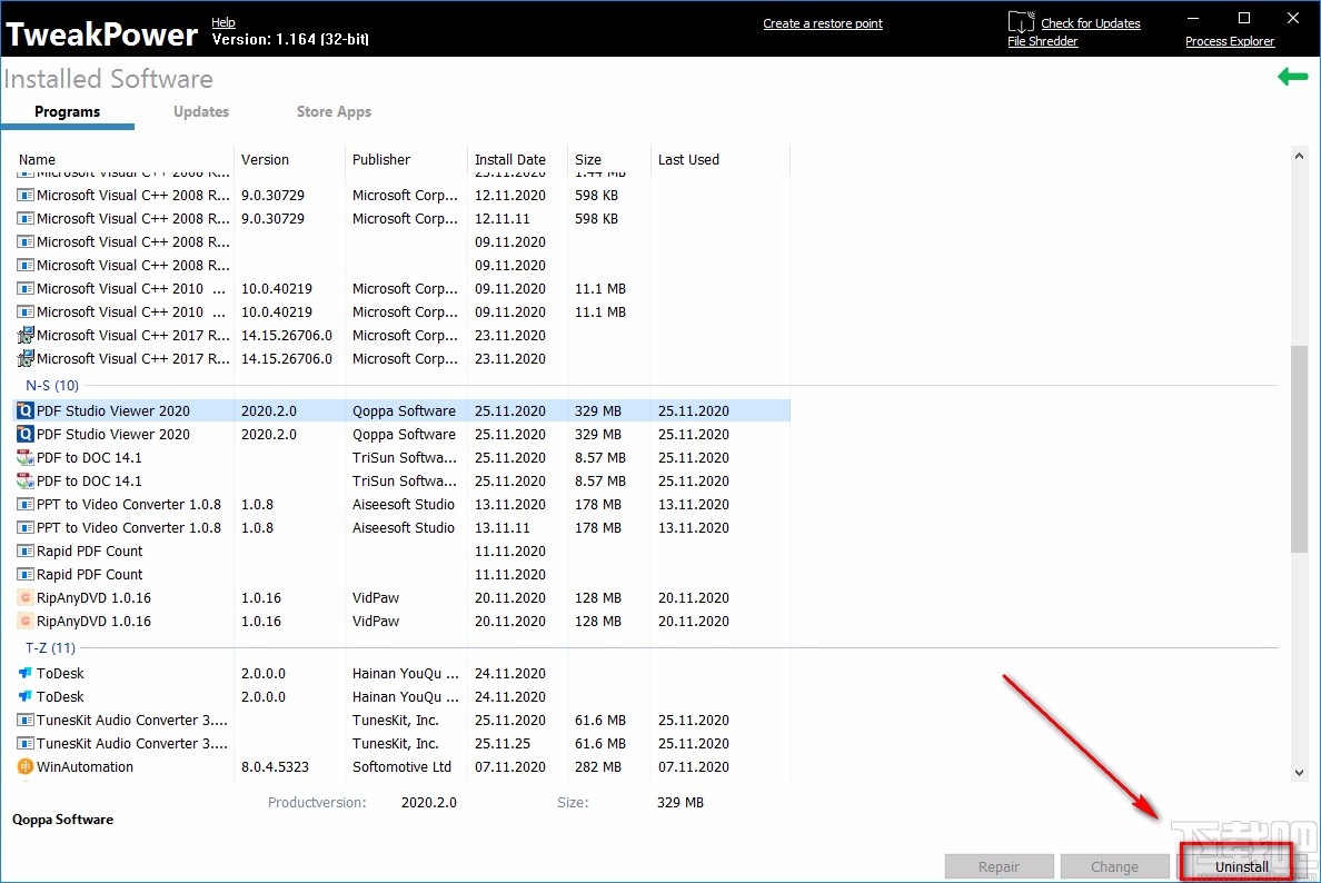 TweakPower是一款十分优秀的专业系统优化软件,这款软件不仅可以帮助用户清理电脑上的垃圾文件,还具备部分系统修复维护功能,用户使用这款软件,可以有效提高电脑系统的稳定性和安全性。相信很多人和小编一样,不小心将一些流氓软件下载到电脑中,之后想要将这类软件删除掉,却发现无法彻底将其删除。针对这样的问题,我们就可以使用这款软件来卸载软件。那么接下来小编就给大家详细介绍一下TweakPower卸载软件的具体操作方法,有需要的朋友可以看一看并收藏起来。