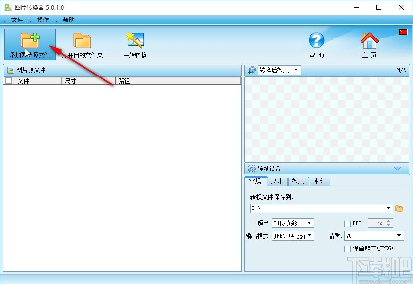 1.首先第一步我们打开软件之后,在软件界面左上角找到添加图片源文件这个按钮,点击之后准备添加图片源文件。