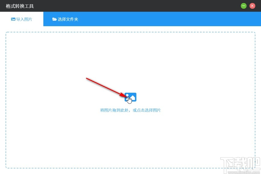 2.进入到这个格式转换界面之后,需要我们先点击界面中的选择图片图标,点击选择想要处理的图片文件。