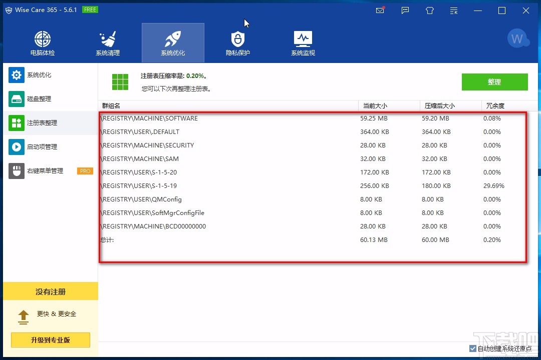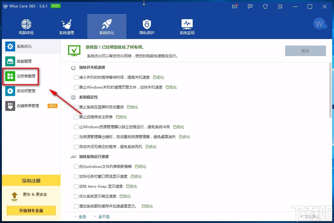 以上就是小编给大家整理的Wise Care 365整理注册表的具体操作方法,方法简单易懂,有需要的朋友可以看一看,希望这篇教程对大家有所帮助。