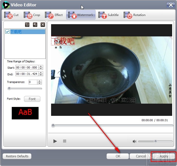 7.设置好水印之后,点击apply按钮应用,再点击OK按钮,保存水印的设置之后回到软件主界面。