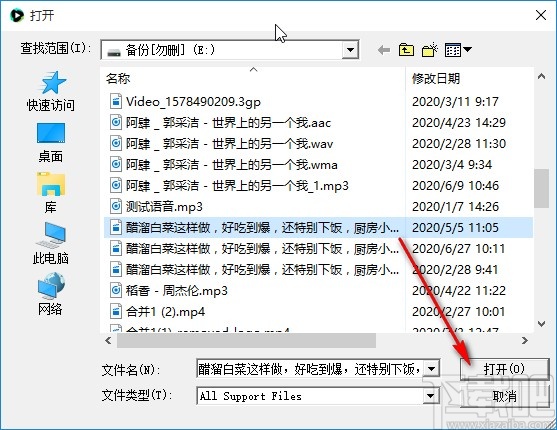 2.点击添加视频之后,接下来下一步我们找到想要处理的视频文件选中之后,点击右下角的打开按钮即可。