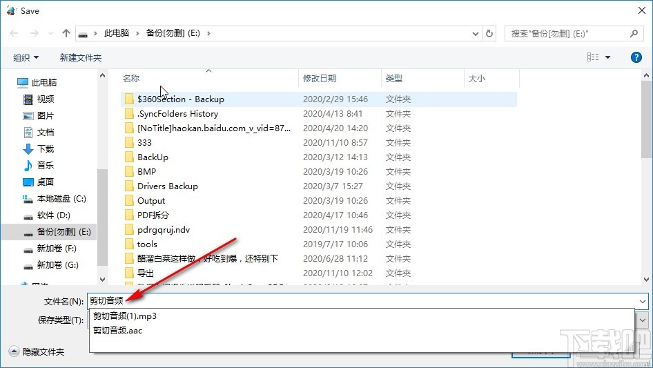 6.点击保存文件之后,在出现的界面中我们选择好保存位置,然后设置好文件名称之后,点击右下角的保存按钮即可将剪切音频保存下来。
