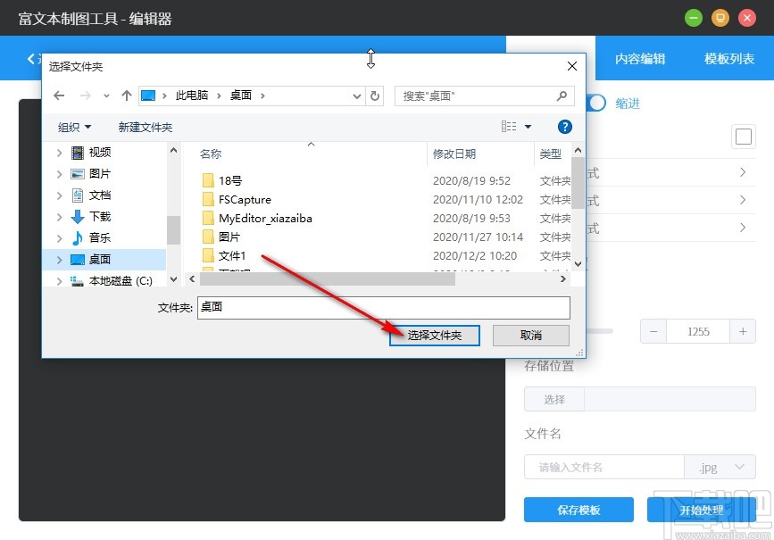 7.点击选择按钮之后就会出现一个选择文件输出路径的界面了,根据自己的需求选择之后,点击选择文件夹按钮即可。