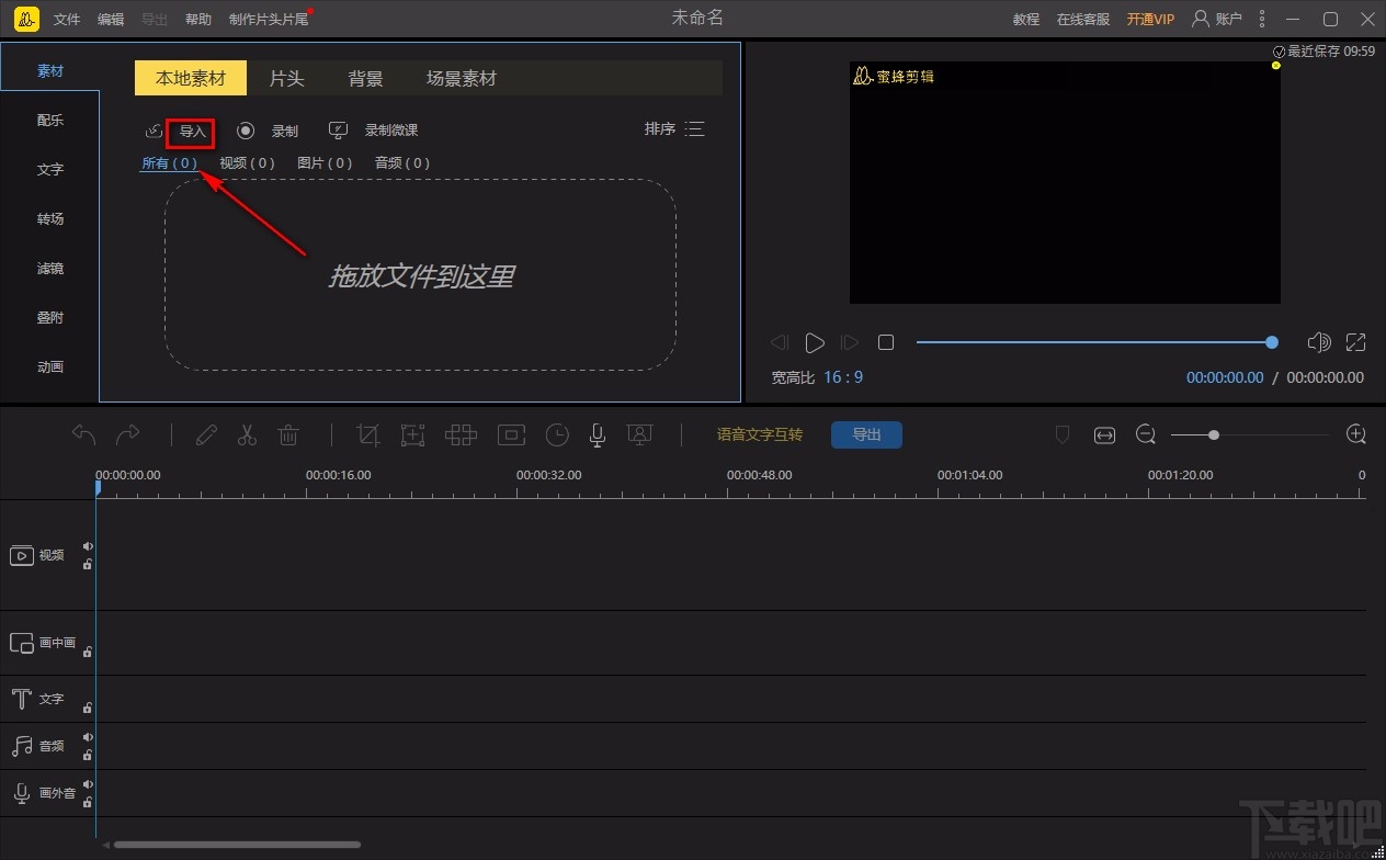 1.首先打开软件,我们在界面左上方找到“导入”按钮,点击该按钮就可以进入到文件添加页面。