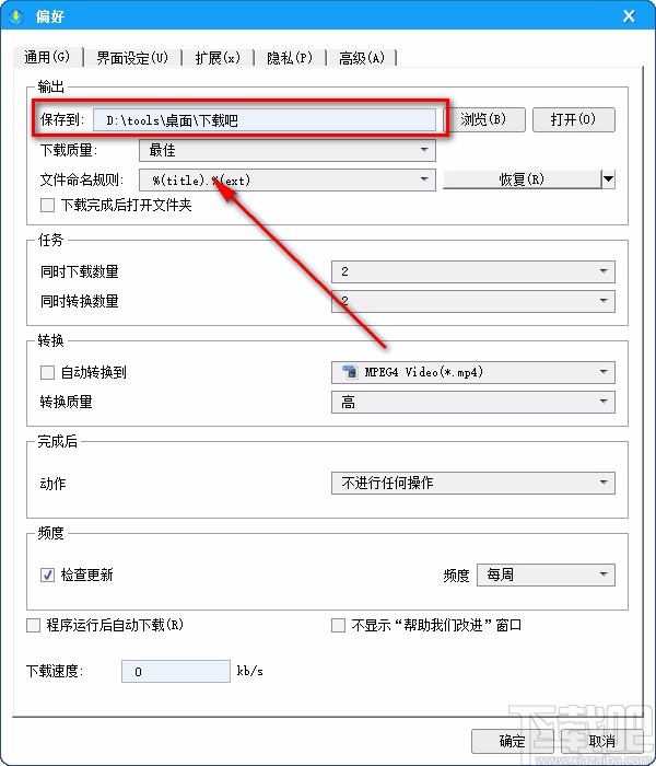 5.接下来我们返回到偏好窗口,在窗口中就可以看到“保存到”选项后面的文本框中显示的就是刚刚所设置的下载位置。