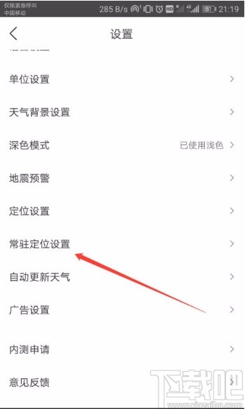4.进入到设置页面后,我们在页面上找到“常驻定位设置”选项,点击该选项再进行下一步操作。