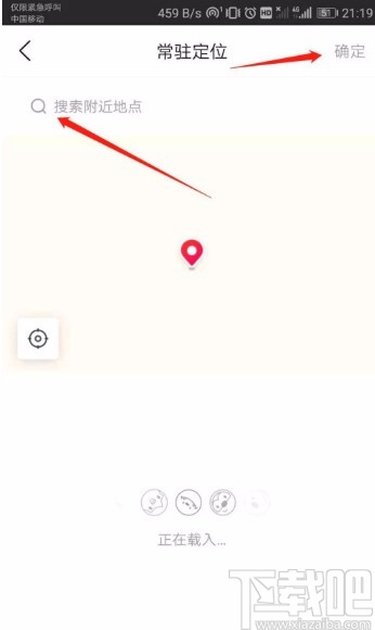 6.最后我们在页面上方找到搜索框,在框中输入地址信息后,再点击界面右上角的“确定”按钮,就成功添加常驻定位地址了。