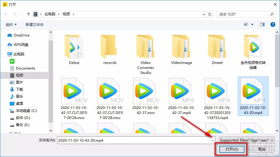 2.接着就可以进入到文件添加页面,在页面中选中需要裁剪画面的视频后,再点击页面右下角的“打开”按钮即可。