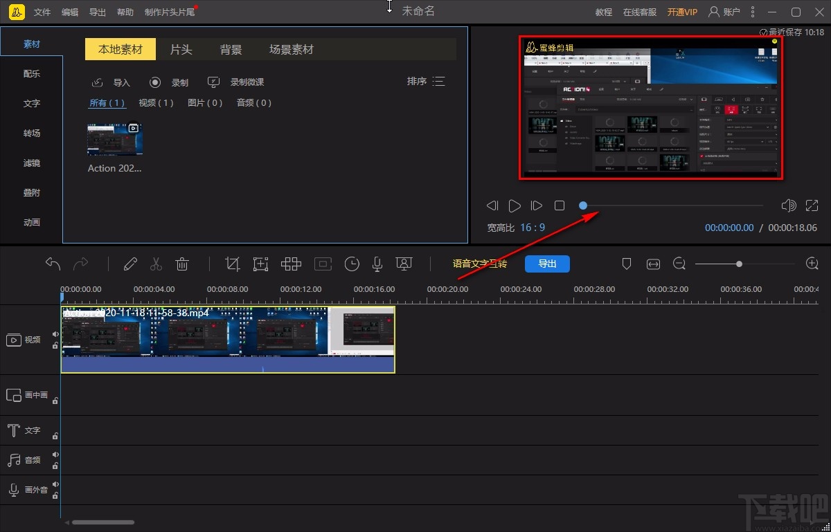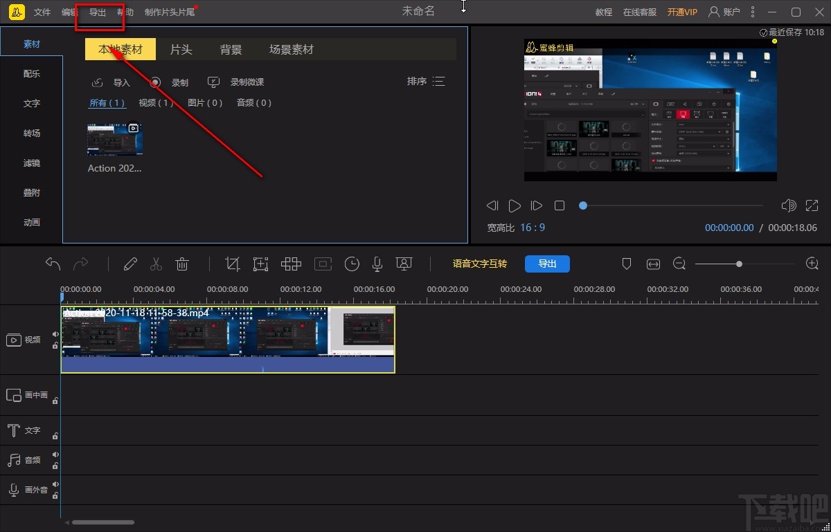 8.最后我们在界面左上角找到“导出”按钮,点击该按钮就可以将裁剪画面后的视频成功导出软件了。