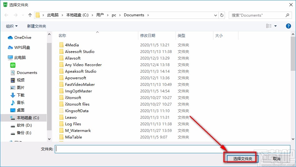 5.接下来在文件保存路径选择页面中,我们选中文件的保存位置后,再点击页面右下角的“选择文件夹”按钮即可。