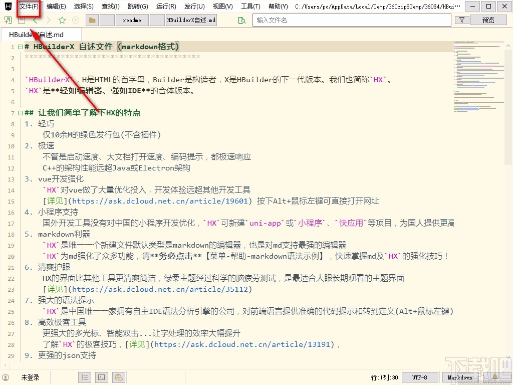 1.首先打开软件,我们在界面左上角找到“文件”选项,点击该选项,其下方会出现一个下拉框。