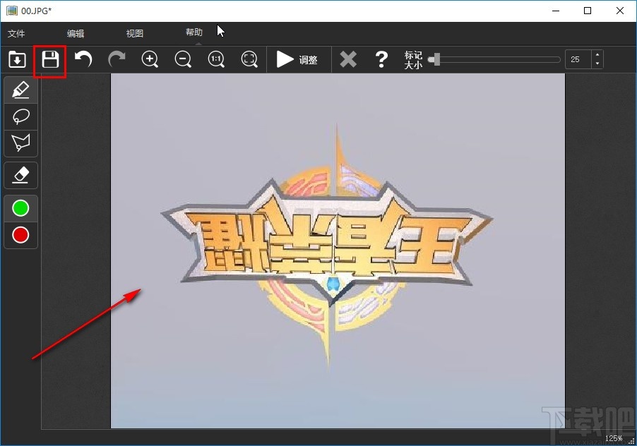 6.开始调整之后,等待一会我们就可以看到图片调整之后的效果了,如下图中所示,点击上方的保存图标可以将调整大小之后的图片保存下来。