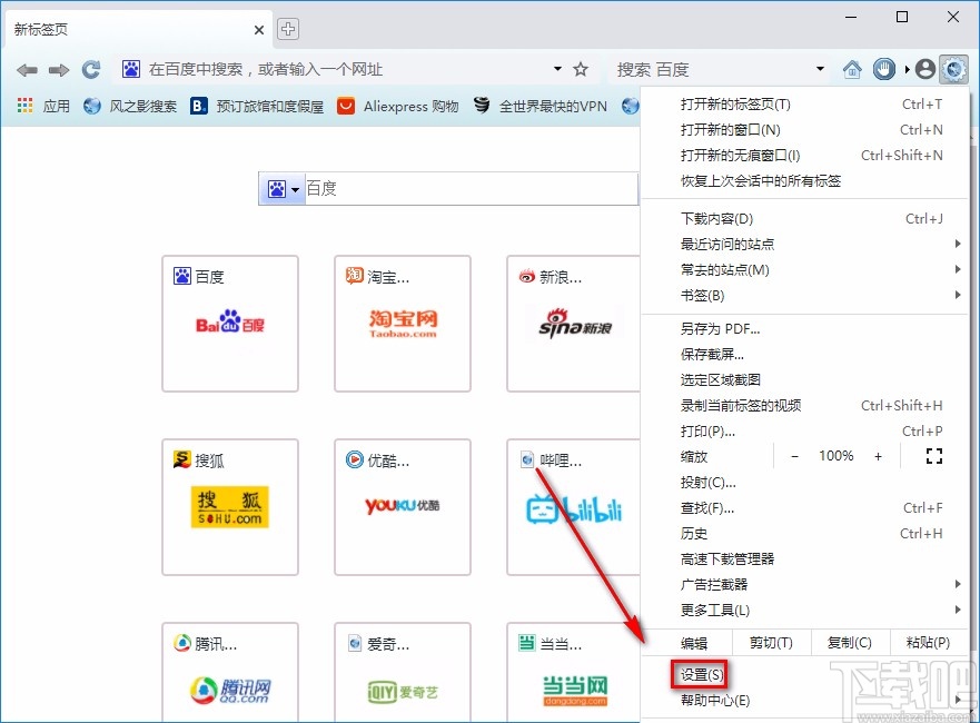 2.在下拉框中有很多操作选项,我们在这些选项中找到“设置”选项,点击该选项即可。