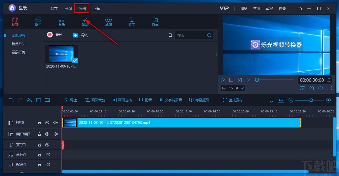 8.完成以上所有步骤后,我们在界面左上方找到“导出”按钮,点击该按钮就可以将裁剪画面后的视频导出软件了。
