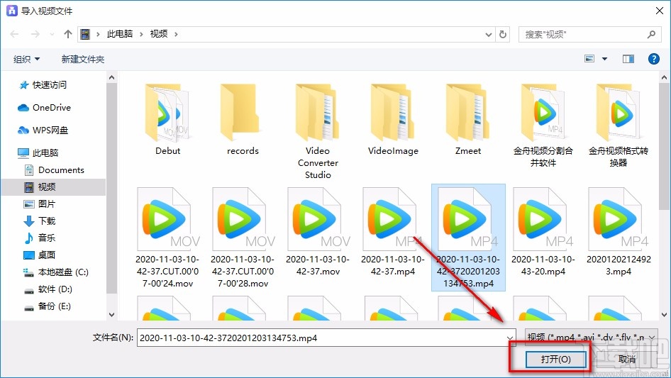 3.在文件添加页面中,我们选中需要裁剪画面的视频文件后,再点击页面右下角的“打开”按钮就可以了。