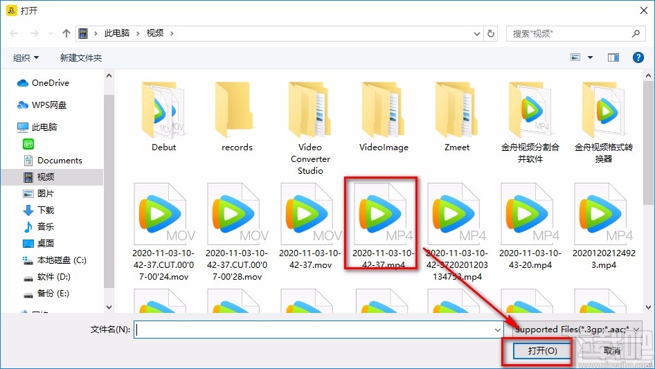 2.接着就可以打开文件添加页面,我们在页面中选择好需要添加马赛克的视频后,再点击页面右下角的“打开”按钮就可以了。