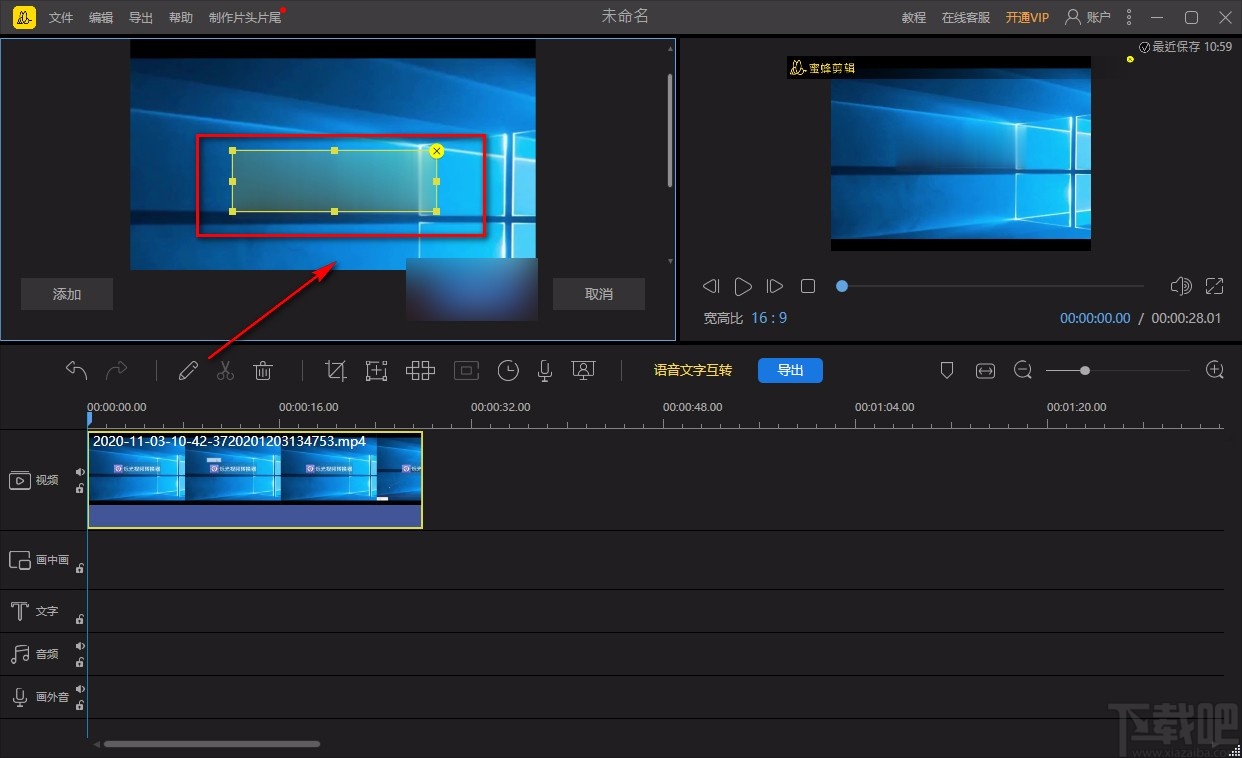 8.完成以上所有步骤后,我们在界面左上方找到“导出”按钮,点击该按钮就可以将添加马赛克后的视频导出软件了。