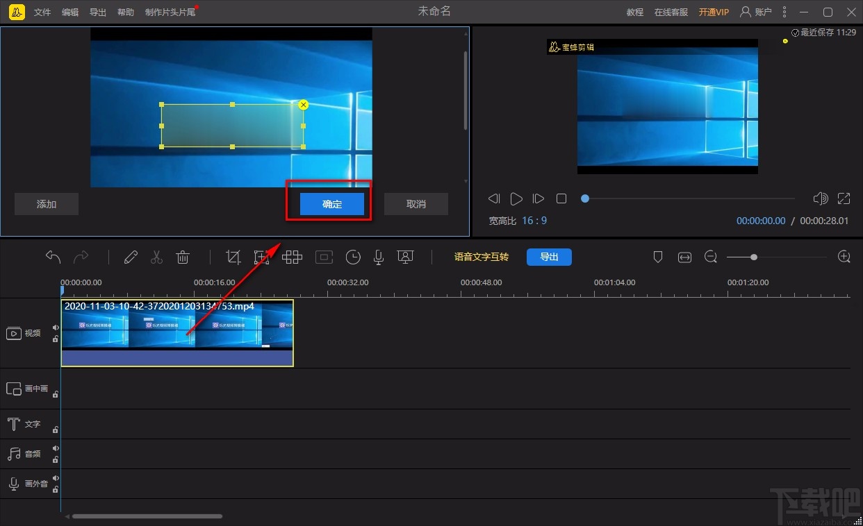 7.给视频添加马赛克后,我们在窗口右下方可以找到蓝色的“确定”按钮,点击该按钮就可以了。