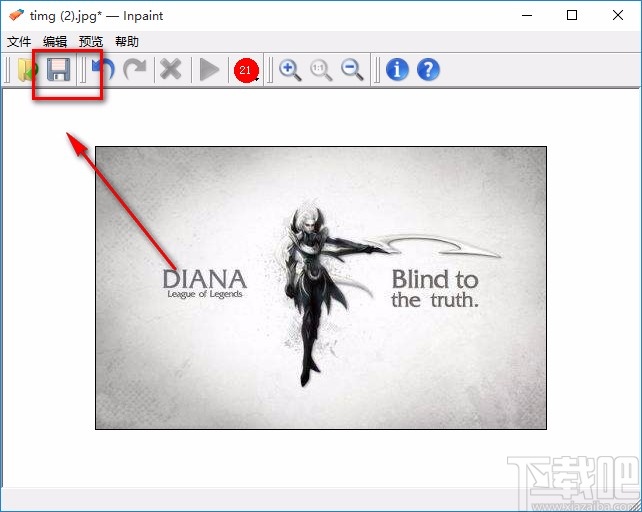 5.水印去除完毕后,我们在界面上就可以看到效果图,如小图所示;这时候点击界面左上方的保存按钮即可。