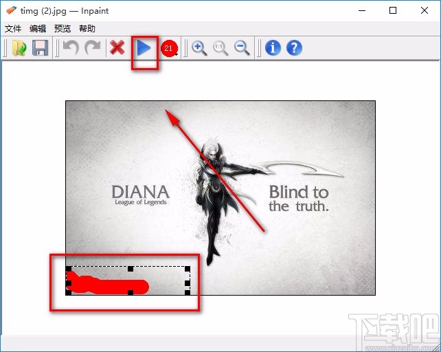 4.然后我们按住鼠标左键不放,同时移动鼠标,将水印给遮掩住,如下图所示;这时候再点击界面上方的三角按钮就可以开始去除水印了。