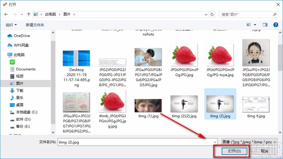 2.接着在文件添加页面中,我们选中需要去除水印的图片文件后,再点击页面右下角的“打开”按钮即可。