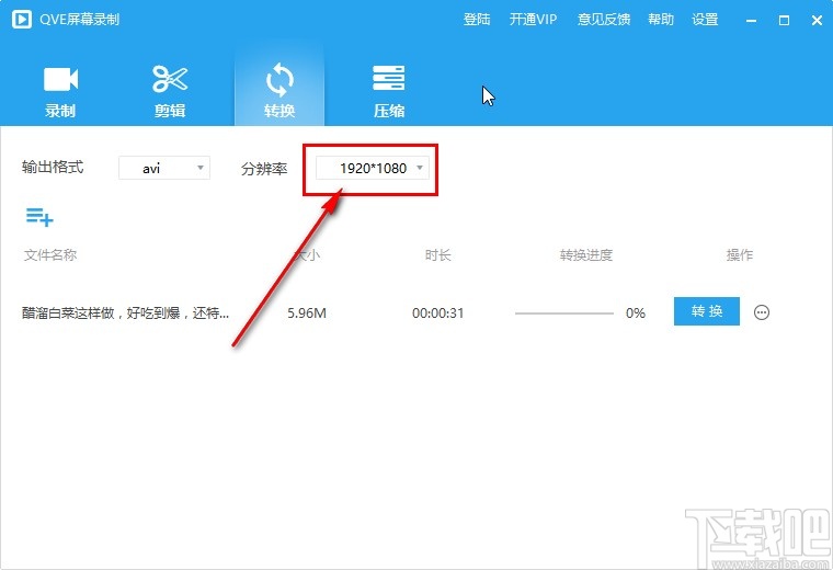 4.选择好想要转换的视频格式之后,下一步我们在分辨率位置点击打开下拉列表,对视频的转换分辨率进行设置。