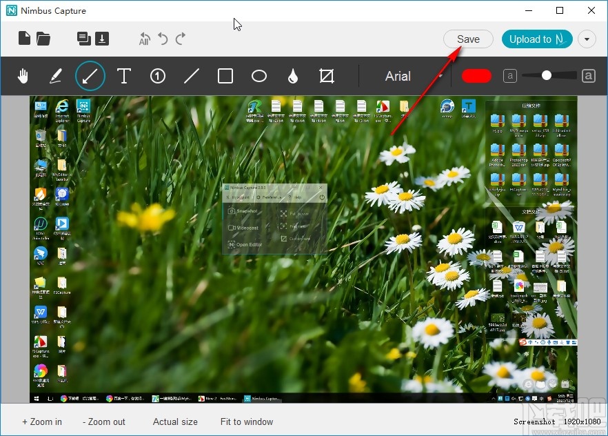 2.截取全屏之后,会自动弹出截图预览界面,如下图中所示,我们点击界面右上角的Save按钮即可将截图保存下来。