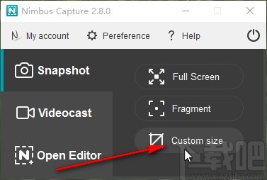 6.保存好截图之后还有最后一种截图方式,Custom size自定义截图的大小,根据自己的需求来选择想要截图的大小。