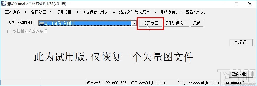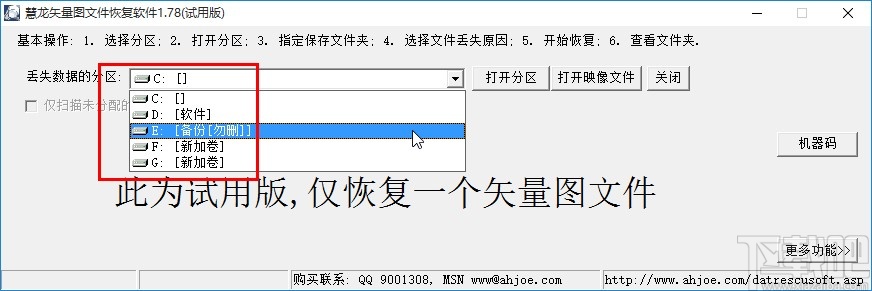 1.首先第一步我们打开软件之后,在界面中打开分区下拉列表,在其中选择一个想要恢复矢量图文件的分区。
