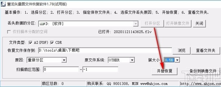 6.设置好这些参数之后我们点击界面中的开始恢复按钮就可以开始恢复选择分区中的矢量图文件了。