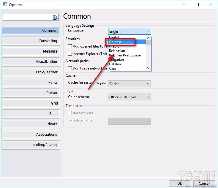 4.之后在窗口上方就可以找到“Language”选项,该选项表示语言的意思,点击该选项后面的下拉按钮,在下拉框中选择“Chinese”选项。