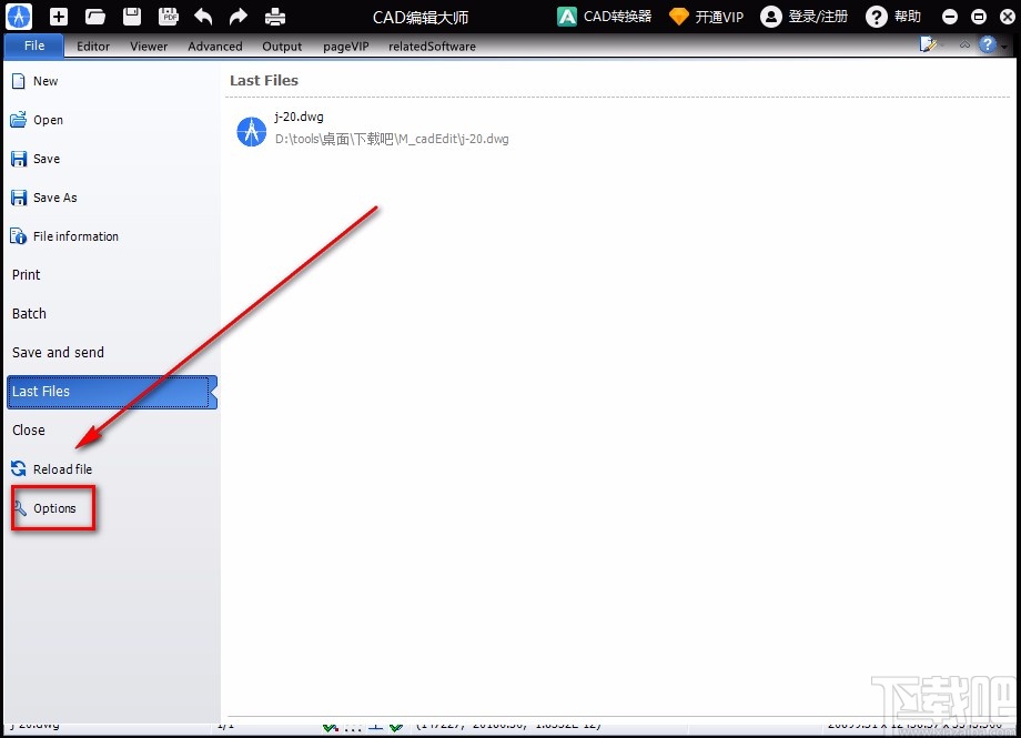 2.接着在“File”选项下方会出现一个下拉框,我们在下拉框中选择“Options”选项。