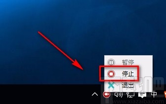 6.电脑屏幕录制完毕,我们在桌面右下角找到软件图标按钮并右击鼠标,会出现一个下拉框,我们在下拉框中选择“停止”选项,就成功录制好屏幕视频了。