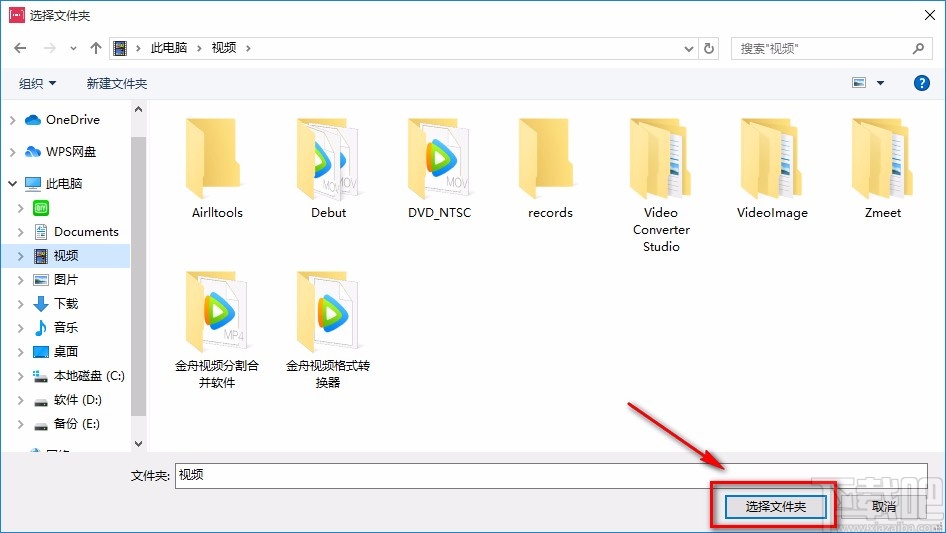 4.接下来在文件保存路径选择页面中,我们选中录屏文件的输出目录后,再点击页面右下角的“选择文件夹”按钮即可。