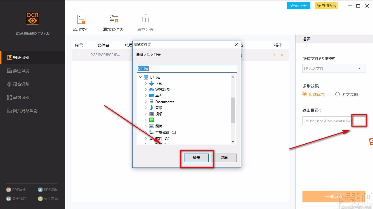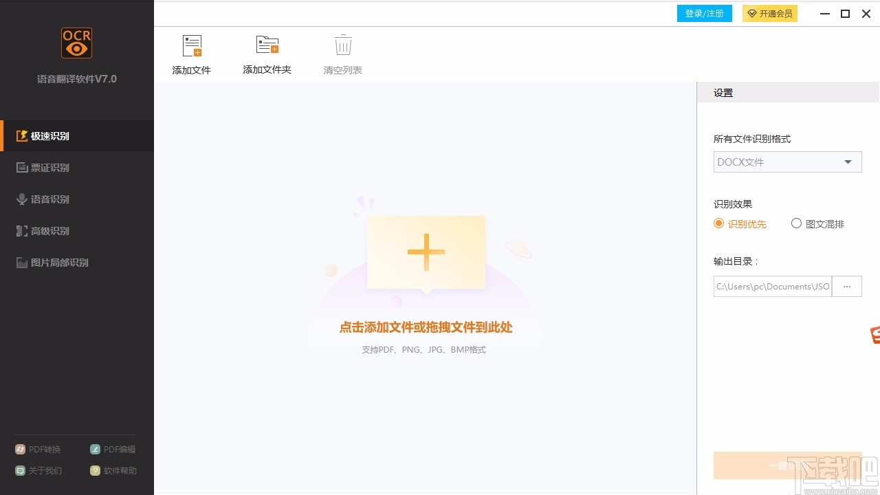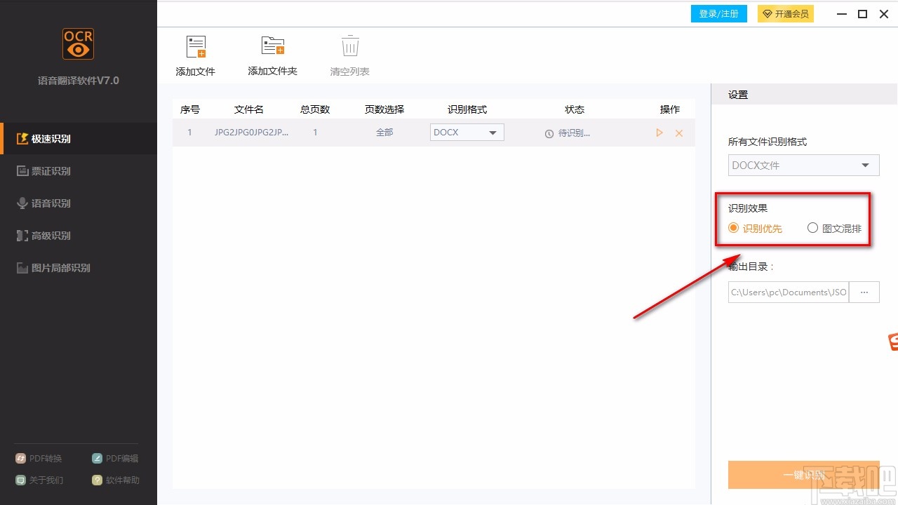 3.将图片文件添加到软件后,我们在界面上方找到“识别格式”选项,点击该选项下方的下拉按钮,在下拉框中设置识别格式。