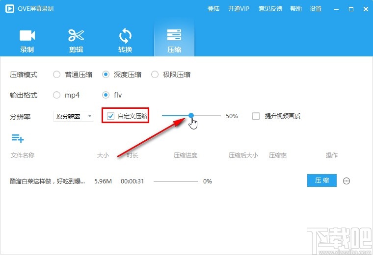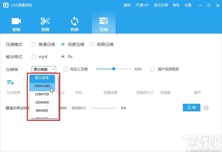 以上就是小编今天跟大家分享一下使用QVE屏幕录制这款软件来压缩视频文件的具体操作方法,有需要的朋友赶紧试一试这个方法吧,希望这篇教程能够帮助到大家。
