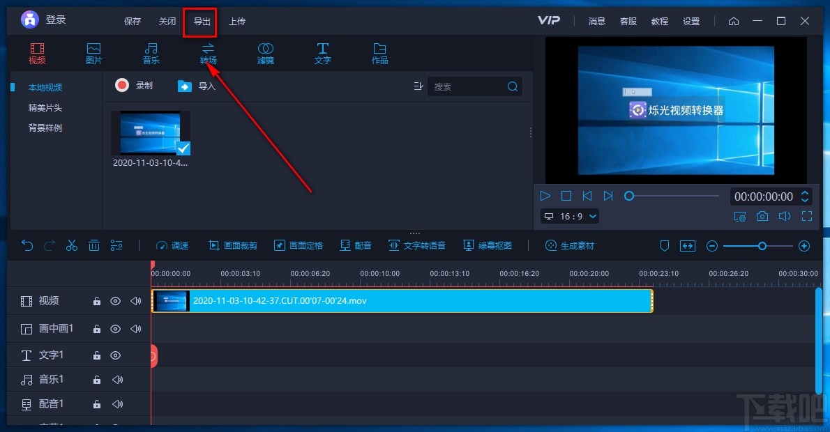 8.完成以上所有步骤后,我们在界面左上方找到“导出”按钮,点击该按钮就可以将调整播放速度后的视频导出软件了。