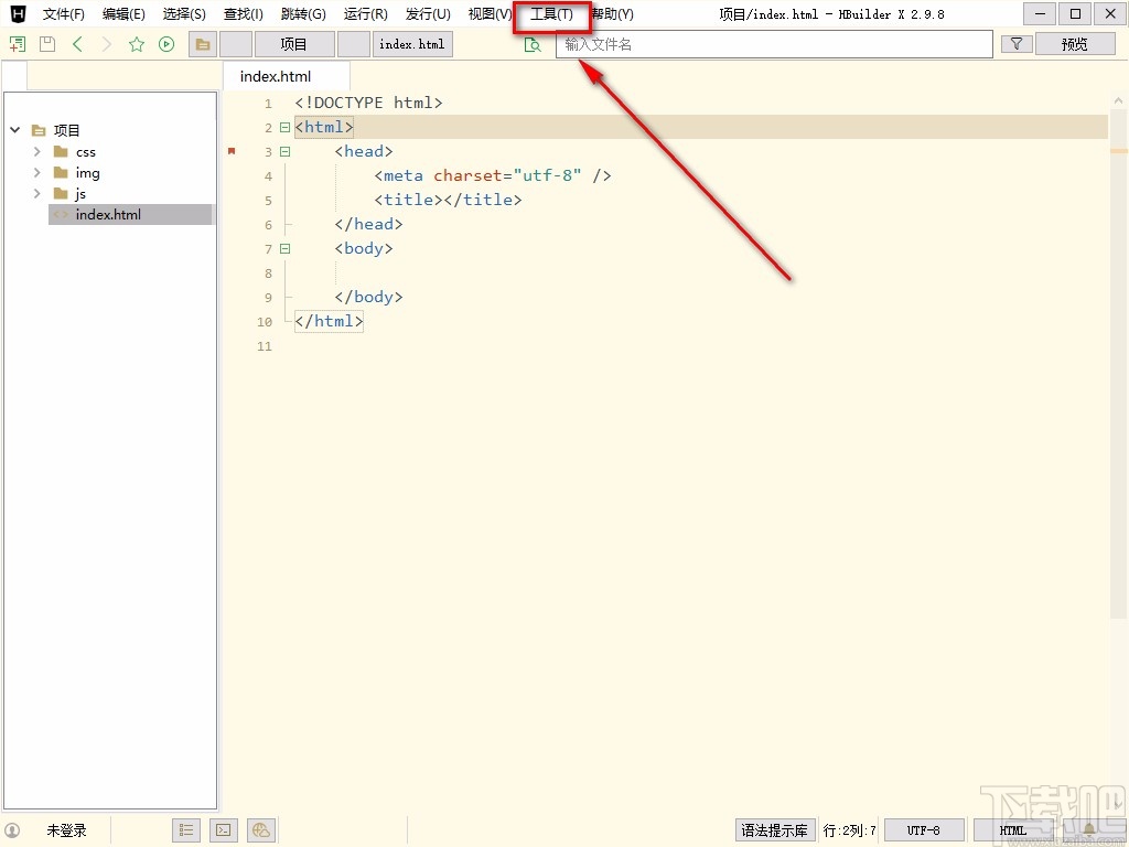 2.接着在界面上方找到“工具”选项,我们点击该选项,其下方会出现一个下拉框。