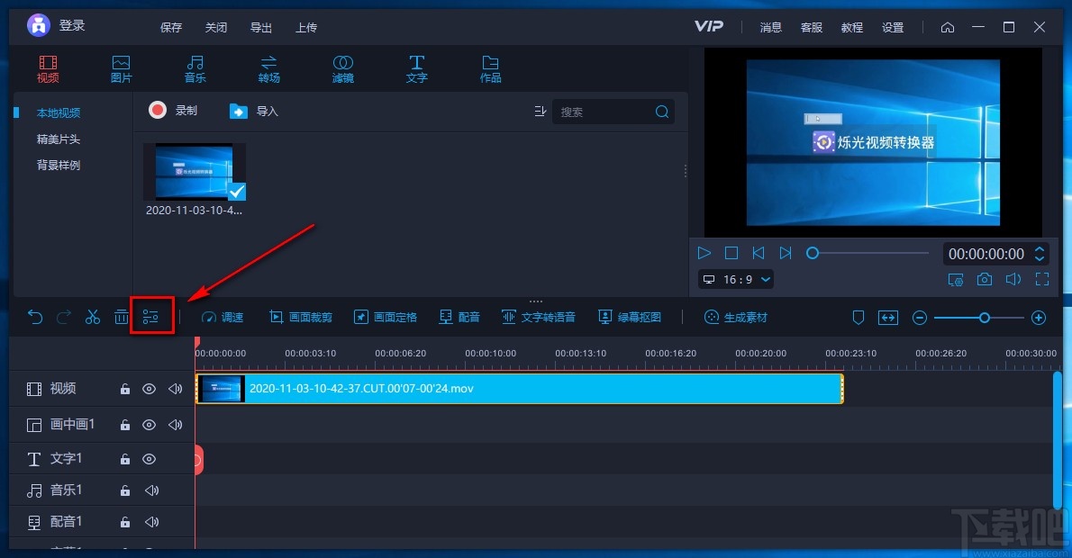 5.然后在时间线的左上方找到下图所示的编辑按钮,我们点击该按钮,界面上方就会出现一个视频编辑窗口。