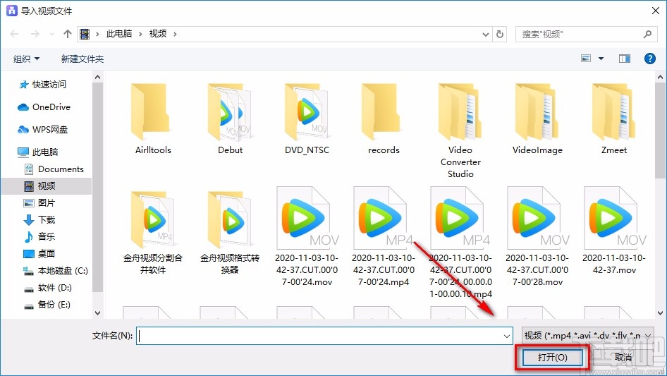 3.在文件添加页面中,我们选中需要进行旋转操作的视频,再点击页面右下角的“打开”按钮就可以了。