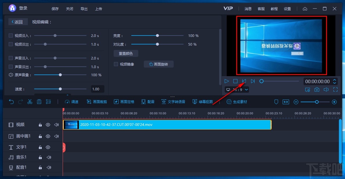 6.接下来在视频编辑窗口中找到“画面旋转”按钮,我们每点击一次该按钮,就可以90度旋转视频,因此根据自己的需要旋转该视频。