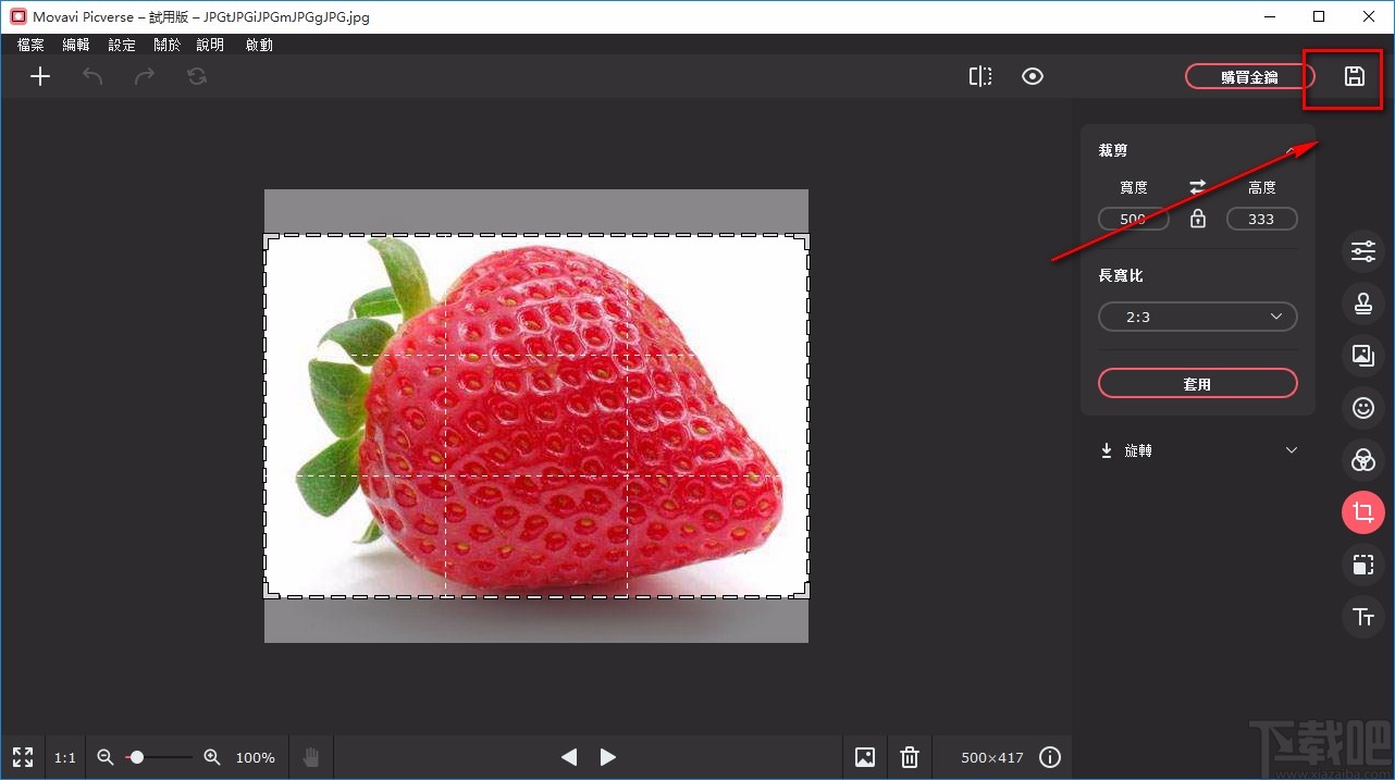 7.完成以上所有步骤后,我们在界面右上方找到保存按钮,点击该按钮就可以将裁剪后的图片保存在电脑中。