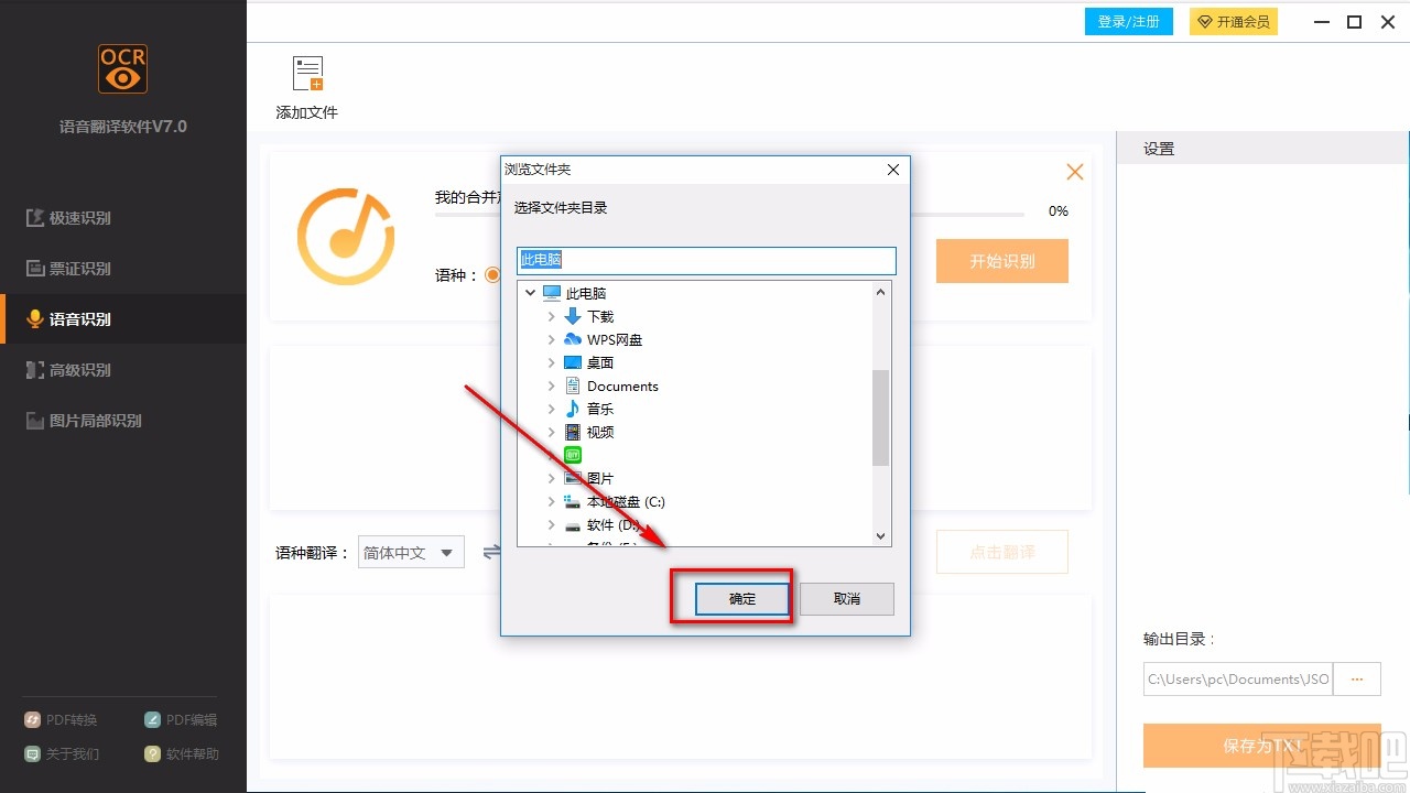 1.首先打开软件,我们在界面左侧找到“语音识别”选项,点击该选项进入到语音识别页面。