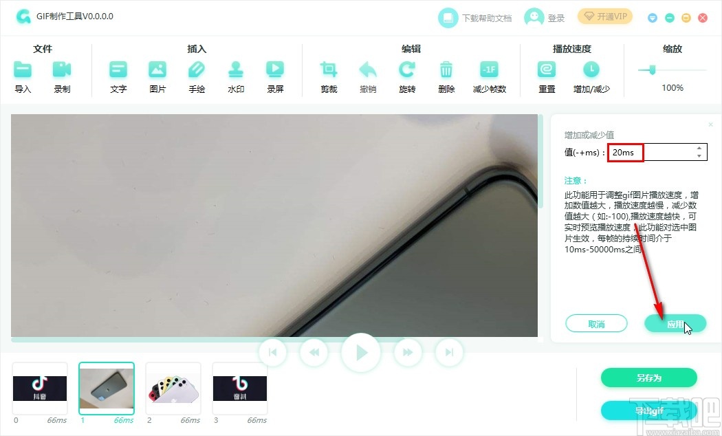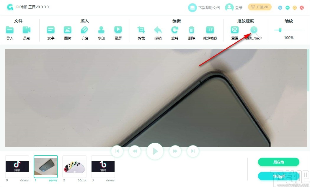 4.如果想要对图片的播放展示时间进行设置的话,我们点击界面右上角的播放速度这个选项中的增加/减少这个功能图标。