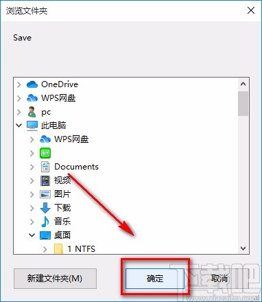 4.然后界面上就会弹出一个浏览文件夹窗口,我们在窗口中设置好文件的保存位置后,再点击窗口底部的“确定”按钮即可。