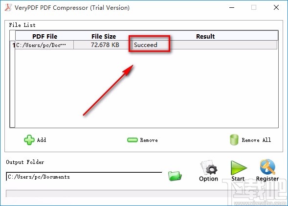 6.文件压缩的速度非常快,压缩完毕后,我们在界面上方可以查看到“Succeed”的提示字样,它表示成功的意思,如下图所示,大家可以作为参考。